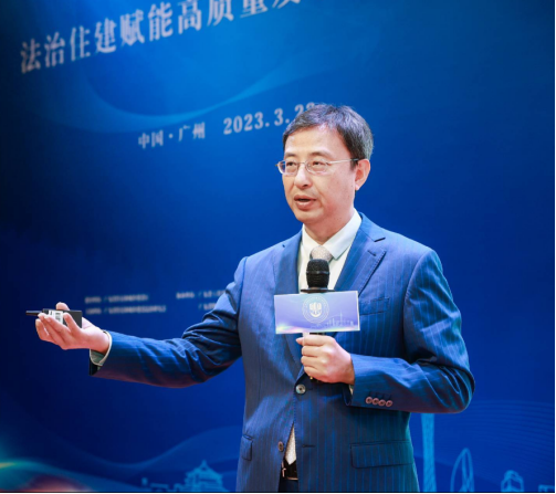 廣東省住房和城鄉(xiāng)建設廳黨組成員、總工程師陳天翼在致辭中指出法研會成立一周年來,認真履行職責,圍繞住建領域法治化建設的重點難點問題,開展法治研究、法治服務、法治宣傳等工作,真正發(fā)揮“政府法治建設的助理員、會員法治實踐的服務員、住建法治工作的宣傳員”的作用,尤其是在物業(yè)管理、訴訟保全方面的研究成果獲得了省廳領導的贊揚和鼓勵,對法研會過去一年工作取得的成績應充分肯定。這次“法治住建賦能高質量發(fā)展”的論壇緊扣法治和高質量發(fā)展兩個熱門話題,緊緊圍繞省委全省高質量發(fā)展大會的部署安排,就住房城鄉(xiāng)建設系統(tǒng)法治建設工作的熱點、難點、堵點問題匯聚大家的智慧,請專家、學者們一起研究探討,把脈問診,非常有意義。陳天翼指出,住建系統(tǒng)如何更好地以高質量的法治工作助力高質量發(fā)展,是擺在我們面前一個很重要的課題,是住房城鄉(xiāng)建設新時代法治政府建設重要任務。第一,要著力提升全系統(tǒng)的法治意識,用法治的思維和法治方式來謀劃工作、處理問題,為推動高質量發(fā)展注入法治動能;第二,著力完善好住建法規(guī)體系,做到有良法可依,為高質量發(fā)展提供法律支撐;第三,著力建設更高水平的法治政府,持續(xù)提升政府公信力和執(zhí)行力,努力為高質量發(fā)展提供法治化、市場化和國際化的營商環(huán)境;第四,著力推進法治宣傳教育,繼續(xù)開展普法“六進”活動,為高質量發(fā)展營造良好的法治人文環(huán)境;第五,著力構建多元化糾紛調解機制,及時化解各類風險和矛盾,為高質量發(fā)展提供和諧穩(wěn)定的社會環(huán)境;最后,希望法研會堅持政治建會、專業(yè)立會、團結興會、創(chuàng)新辦會,把法研會辦得越來越好,出更多管用實效的成果,為全省住建法治建設工作作出新的更大的貢獻。