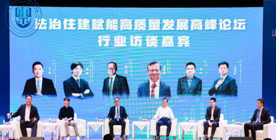 主旨演講環(huán)節(jié)結束后,設置“行業(yè)訪談”環(huán)節(jié)。廣州市建筑集團有限公司總法律顧問朱小林,省建筑設計研究院有限公司總經(jīng)理助理、規(guī)劃專業(yè)副總工程師李鵬,省城鄉(xiāng)規(guī)劃設計研究院有限責任公司黨委副書記、總經(jīng)理王暉,碧桂園服務CMO 兼城市服務集團總裁汪英武,省房地產(chǎn)行業(yè)協(xié)會副秘書長肖烈,省市政行業(yè)協(xié)會常務副會長兼秘書長唐建新等六位嘉賓進行了對話。他們分布在房地產(chǎn)業(yè)、建筑業(yè)兩大支柱產(chǎn)業(yè),涵蓋建設領域從規(guī)劃、設計、施工到市政公用、城市運營等各個環(huán)節(jié),從政府管理、企業(yè)經(jīng)營、社會服務等不同角度,分享了在推進住建領域法治化方面的感悟和做法,并就如何加強政府與企業(yè)、企業(yè)與社會之間的溝通協(xié)調、合作共贏等問題進行了深入交流。