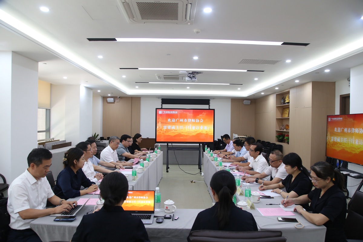 7月25日下午,廣州市律師協會建設工程法律專業委員會(以下簡稱“廣州律協建工委”)主任雷建威率委員會一行八人到我協會開展座談交流。座談會由我協會秘書長黃鴻欽主持,我協會會員單位代表、法律顧問及秘書處相關負責人參會。