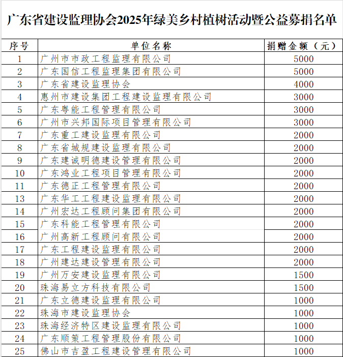 嶺南春意盎然,植樹添綠正當時。為深入踐行習近平生態文明思想,積極響應省委關于推進綠美廣東生態建設的戰略部署,積極助力“百縣千鎮萬村高質量發展工程”,今年2月,協會發出倡議,赴佛山市南海區丹灶鎮羅行社區(下稱“羅行社區”)開展2025年綠美鄉村植樹活動暨公益募捐,活動得到了24家會員單位及黨組織的大力支持,共募捐了5.5萬元,全部用于購買紫花、黃花風鈴木和桃花心樹苗。