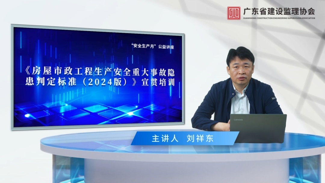 為響應2025年安全生產月“人人講安全 個個會應急——查找身邊安全隱患”主題活動,進一步強化建筑工程企業安全生產主體責任,切實筑牢安全生產防線,廣東省建設監理協會精心策劃“安全月”系列講座。首場線上直播講座于6月5日成功舉辦,特邀廣東重工建設監理有限公司總工程師兼安全總監劉祥東進行專題授課,圍繞《房屋市政工程生產安全重大事故隱患判定標準(2024版)》(以下簡稱《標準》)開展深入解讀與案例分析,為省內外建設監理企業帶來專業安全知識盛宴,本次直播共吸引了1.5萬余人線上參與。